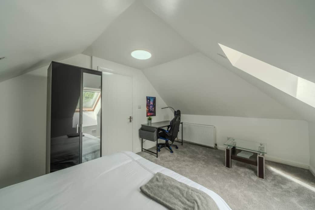 Modern private house on a main road—just 15 minutes from Manchester city centre and a short walk to Heaton Park. Enjoy a private entrance, driveway parking, and all the essentials for a comfortable stay. The fully equipped kitchen includes a stove, microwave, toaster, kettle, and fridge, with tea, coffee, and cereal provided. Fresh towels, toiletries, plates, and cutlery are also included. Located in Prestwich, this modern four-bedroom bungalow offers a convenient and comfortable base for solo travellers, couples, families, or small groups. It’s close to local amenities and transport links, making it ideal for weekend getaways, work trips, or visiting loved ones. Inside, you’ll find a compact open-plan kitchen designed for relaxed, self-catered stays, equipped with everything needed for meal preparation: oven, hob, microwave, fridge-freezer, kettle, toaster, cookware, and utensils. A private living room is available exclusively for guests, offering a great space to unwind. The dining table cleverly converts into a pool table and table tennis table, perfect for both leisure and entertainment. The living room also includes a TV with Netflix, Paramount+, and Disney+, giving you plenty of options to relax after a busy day. Each of the four bedrooms is comfortably furnished with soft linens and calming décor for a restful night’s sleep. The bathroom features a walk-in shower, WC, and basin, with towels and basic toiletries provided. The property is modest in size but well designed for comfort and practicality. Off-street driveway parking makes coming and going easy throughout your stay. Being situated on a main road allows excellent access to transport, shops, and restaurants—though some road noise should be expected. Lower kitchen, all rooms, toilets, and bathrooms are located on the second floor. An instruction manual can be found upon entering the property with all details, including how to reach me if needed. Additional Information: Check-out time: 11:00am. Unauthorised late departures may incur a £25 per hour fee to cover cleaning and scheduling disruptions. Guest policy: The standard nightly rate includes up to two guests. Additional guests are charged £20 per person per night. Please ensure the correct number of guests is entered when booking—this helps us prepare the property properly. Guest numbers are monitored via the Ring doorbell. This home is a great choice for guests seeking a simple, modern, well-connected base during their stay in Greater Manchester—comfortable, practical, and ideal for both relaxation and exploring the area.No parties or events. Violations may result in cancellation and charges via Airbnb for damages/cleaning.
